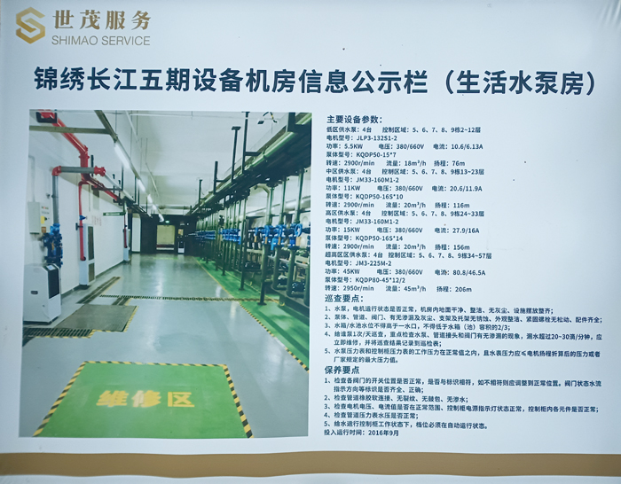不锈钢立式多级离心泵:水泵采用上海凯泉KQDP系列不锈钢立式多级离心泵,是供水泵房的核心设备,用于将水从水源不锈钢水箱提升到住宅用户家里水龙头直接使用,超高层为提升到57层屋面生活不锈钢水箱再经过屋面变频增压泵加压到超高区域用户家里用水点,不锈钢立式多级离心泵为小区供水提供动力。在超高层小区中,会根据不同的供水区域和压力需求,选用多级离心泵,它能够在较高的扬程下提供稳定的流量。上海凯泉KQDP系列不锈钢多级离心泵具有、节能、稳定的特点,被广泛应用于超高层供水系统。